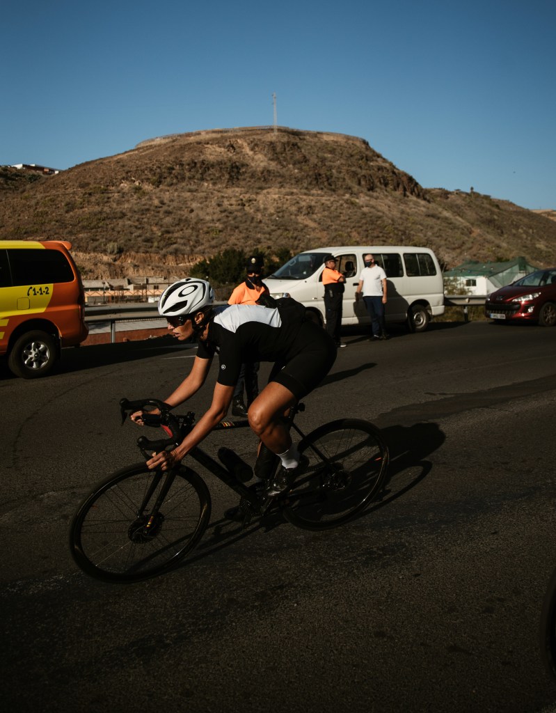Day 2 again began with our same morning commute, picking up Susan on the way, who had ridden a sterling race yesterday to sit second lady overall. We had a mechanical issue to sort with Ewa’s front brake to inject some urgency, but as the group assembled for the off, we were all well positioned for the short neutralised section out of Playa del Ingles and through San Fernando.