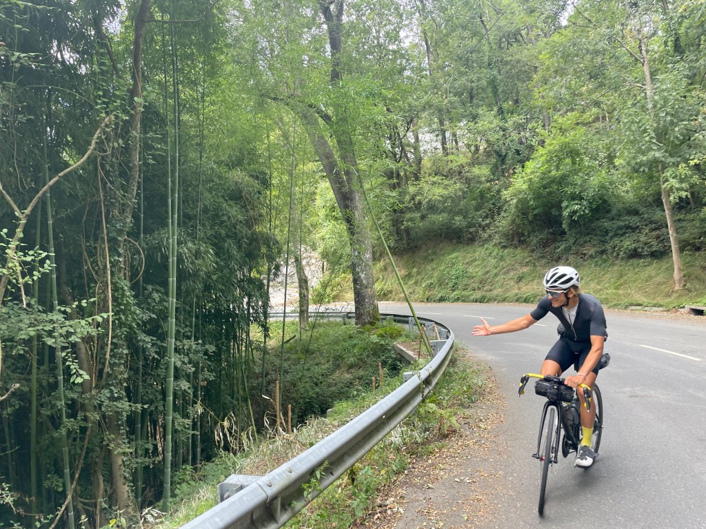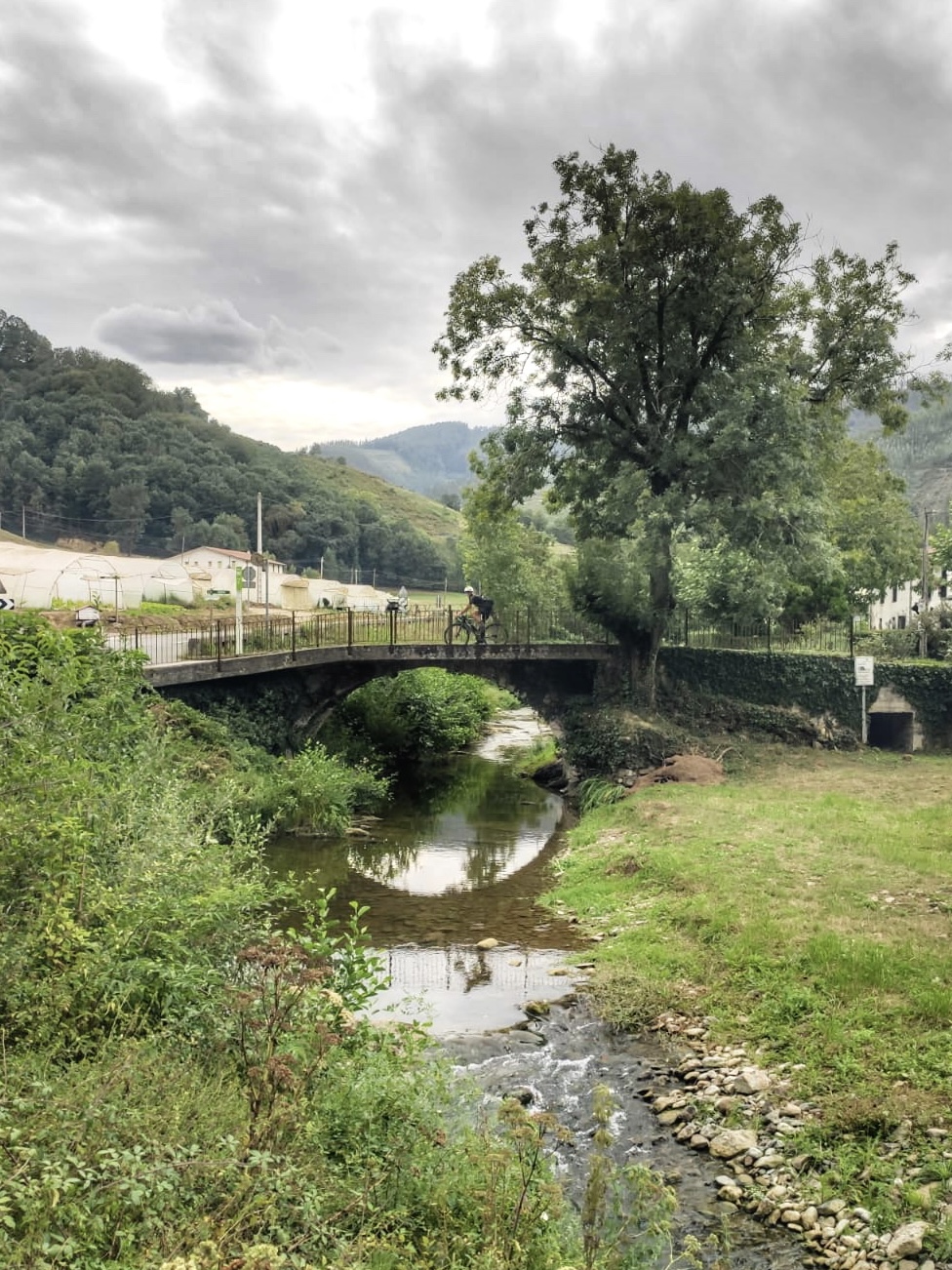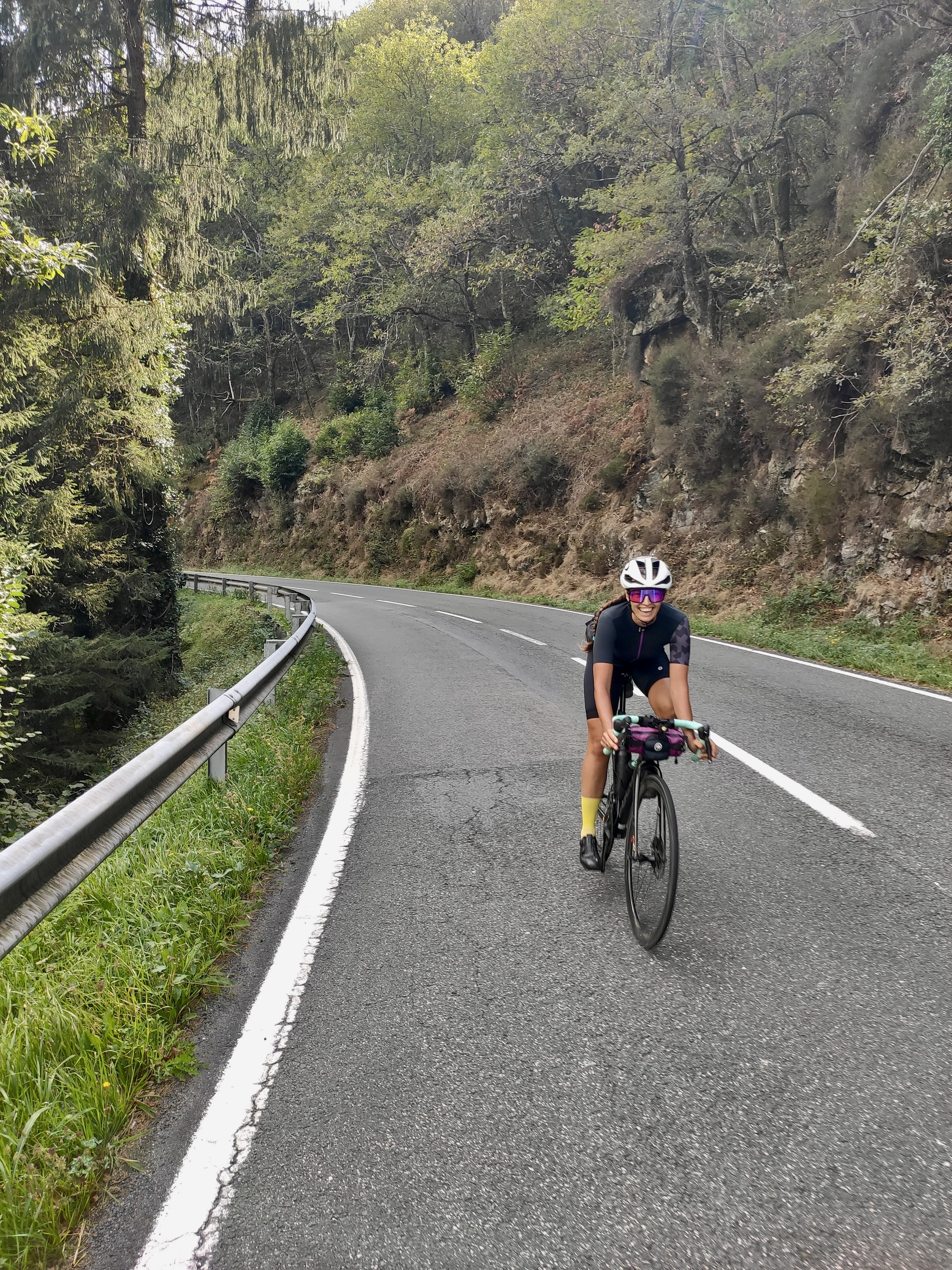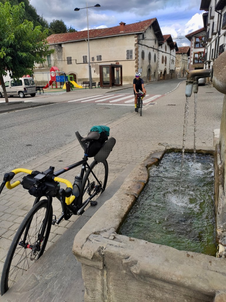 Onwards we went, filling bottles from a spouting fountain by a riverside in Ordizia, before entering a loooong valley road where Ewa’s Garmin was convinced we were cycling through a lake.. 🧐😆