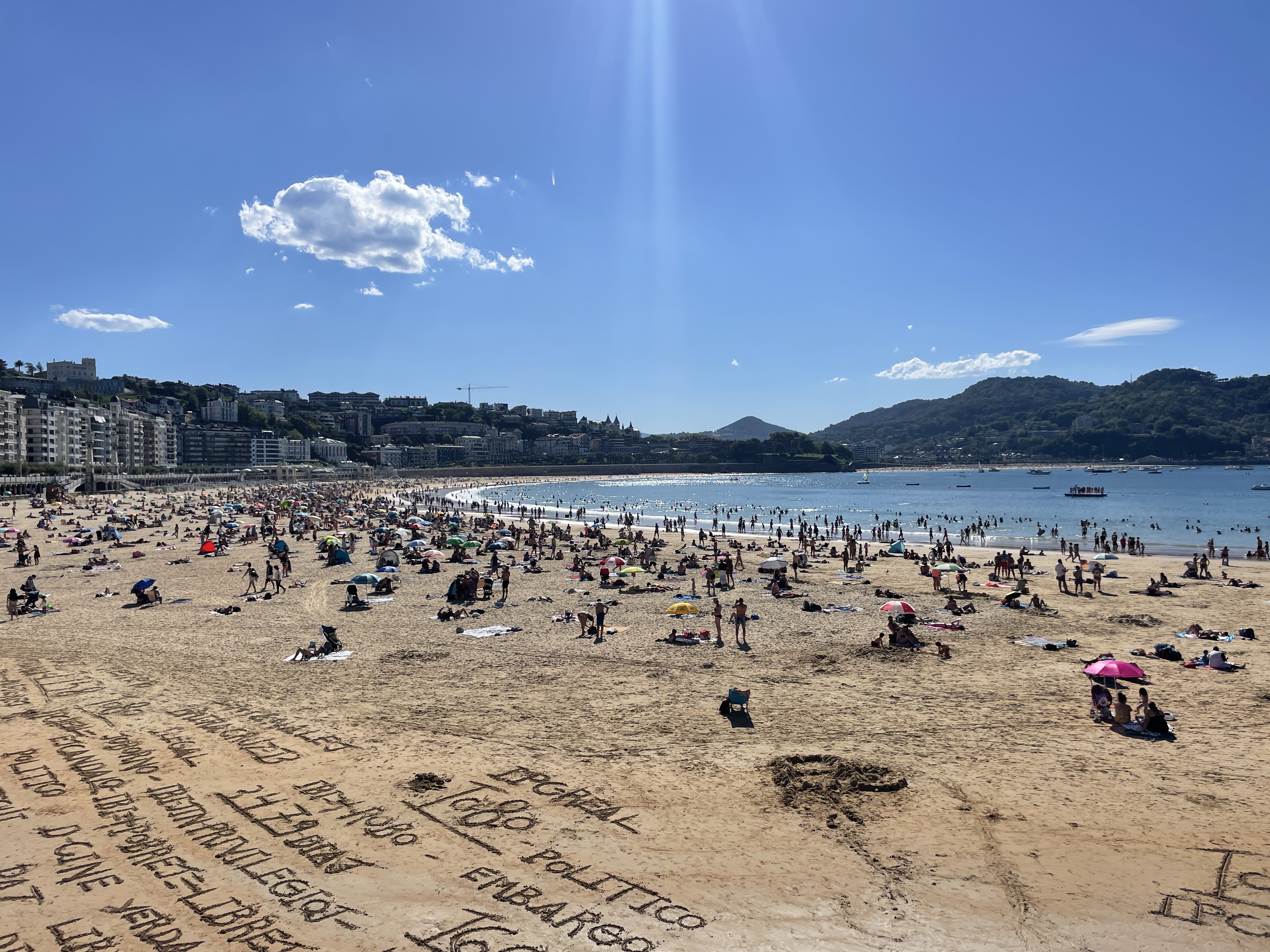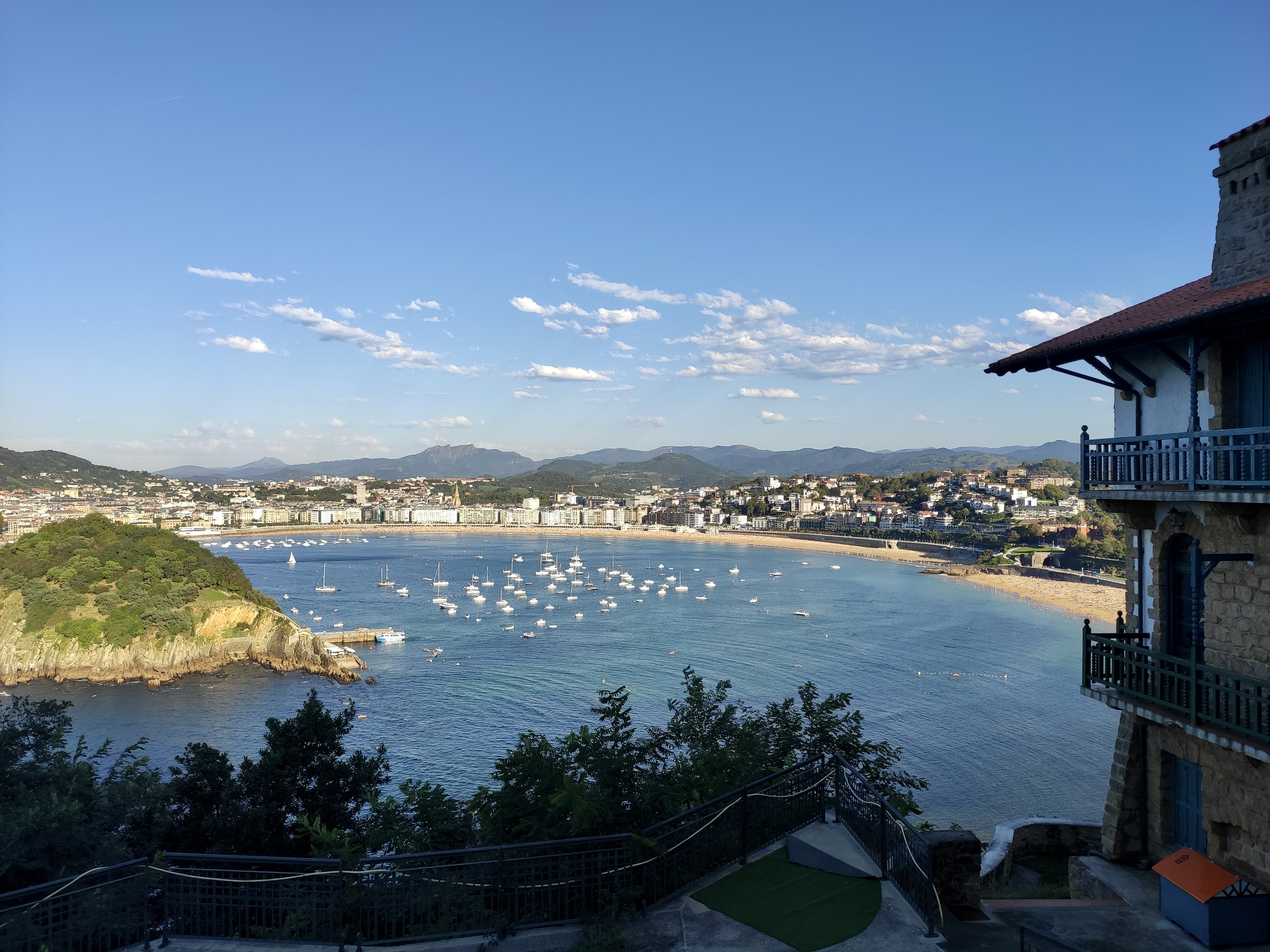 Entering back into busy areas, we soon reached the heart of San Sebastian: our stop for the night. We decided to dump our bags at the accomodation (up a hill, and some stairs..! ), before jumping back on our lightened bikes, just flip flops on our feet. We’re not really city people, but it’s always nice to see the high point of any town, and the tight hairpins weaving under the funicular de Igeldo lead to a wonderful vantage point; despite the road being closed near the top.