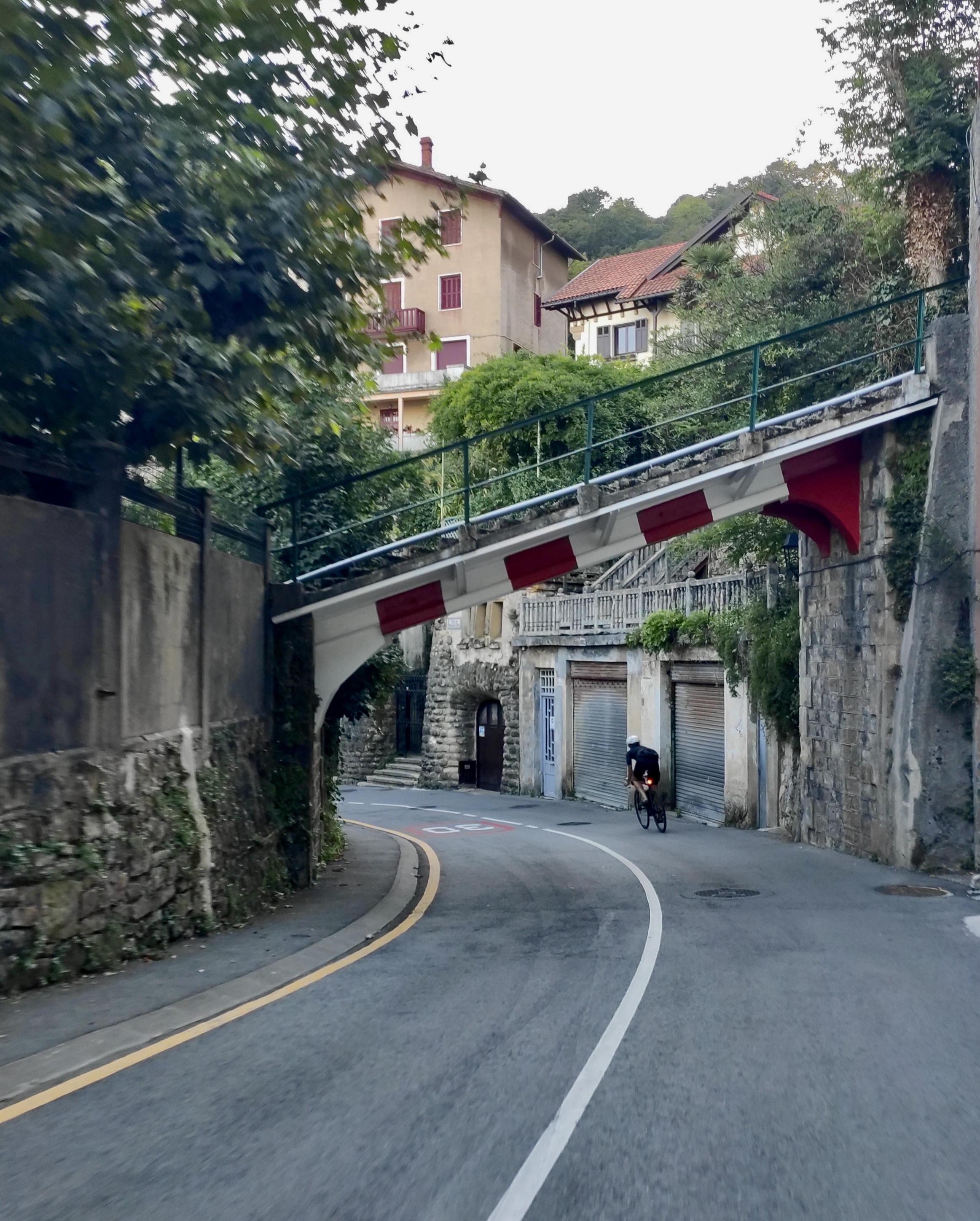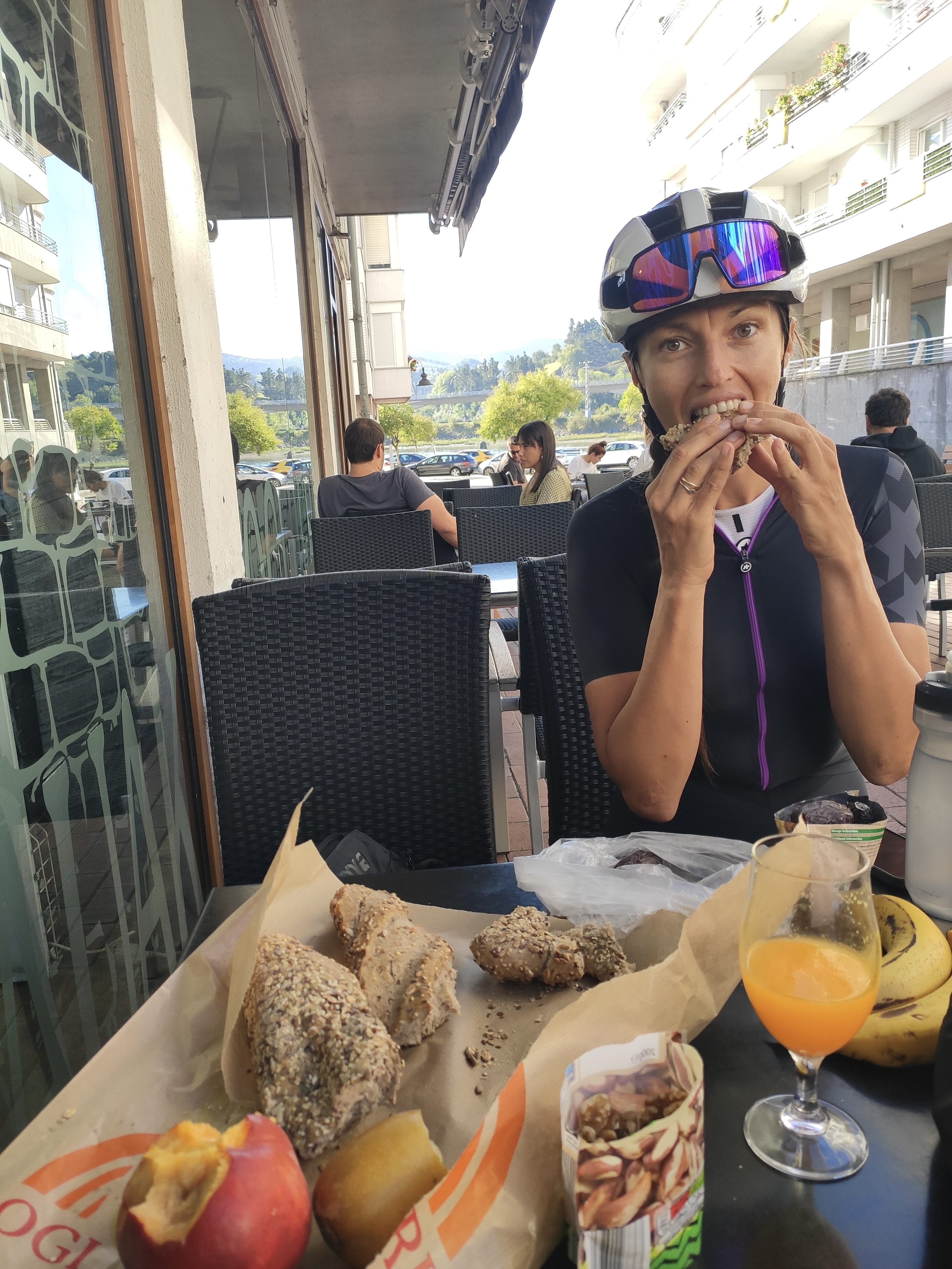 That soon brought us down into Orio; where we found absolutely nothing to do with the similarly named confection, but did find a nice café for some breakfast; fresh bread, coffee, OJ, and some fruits from the neighbouring fruteria; perfect, set for a good day in the saddle ! Talk of other adventures, another cyclist in the café was wearing the jersey from the first epic event Mikel & I had done, together with another amigo Valentin: the Luchon-Bayonne back in 2018! Yes we were in the Basque country 😊
