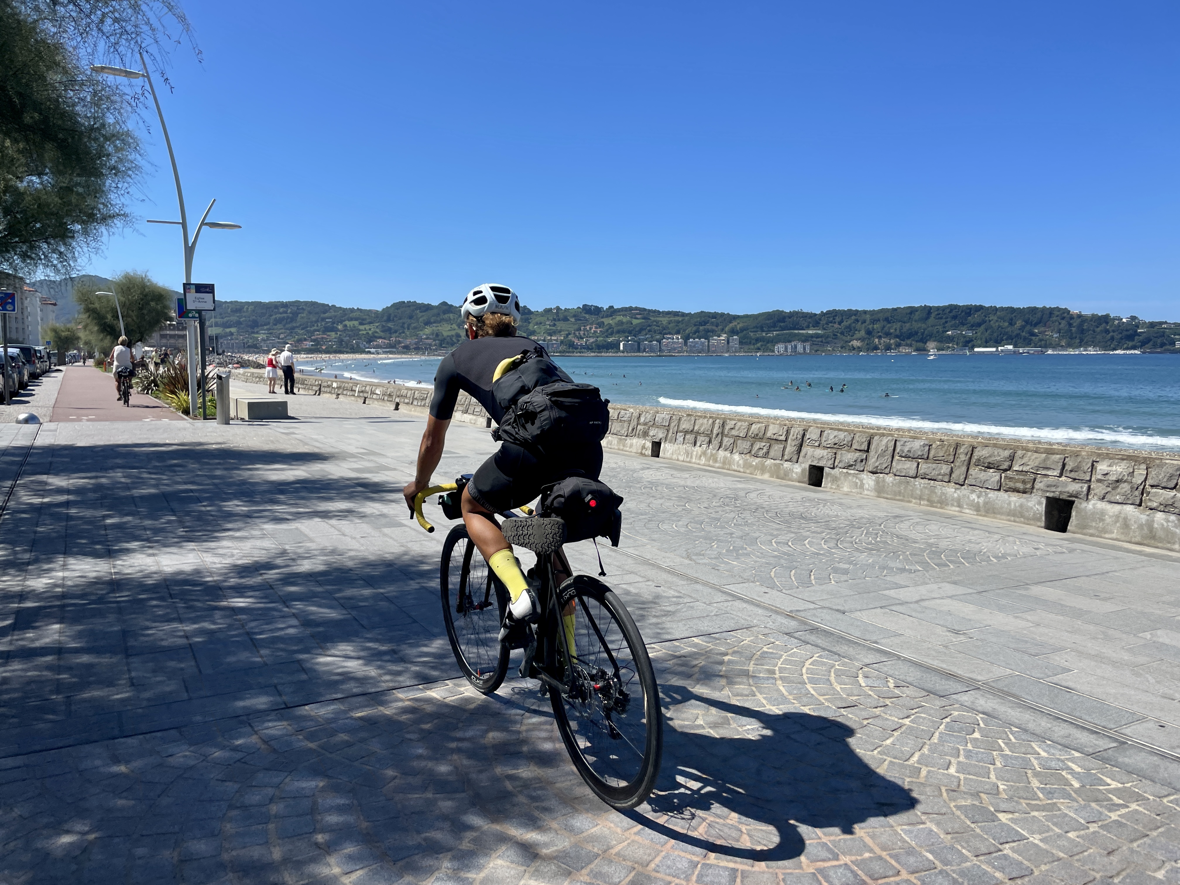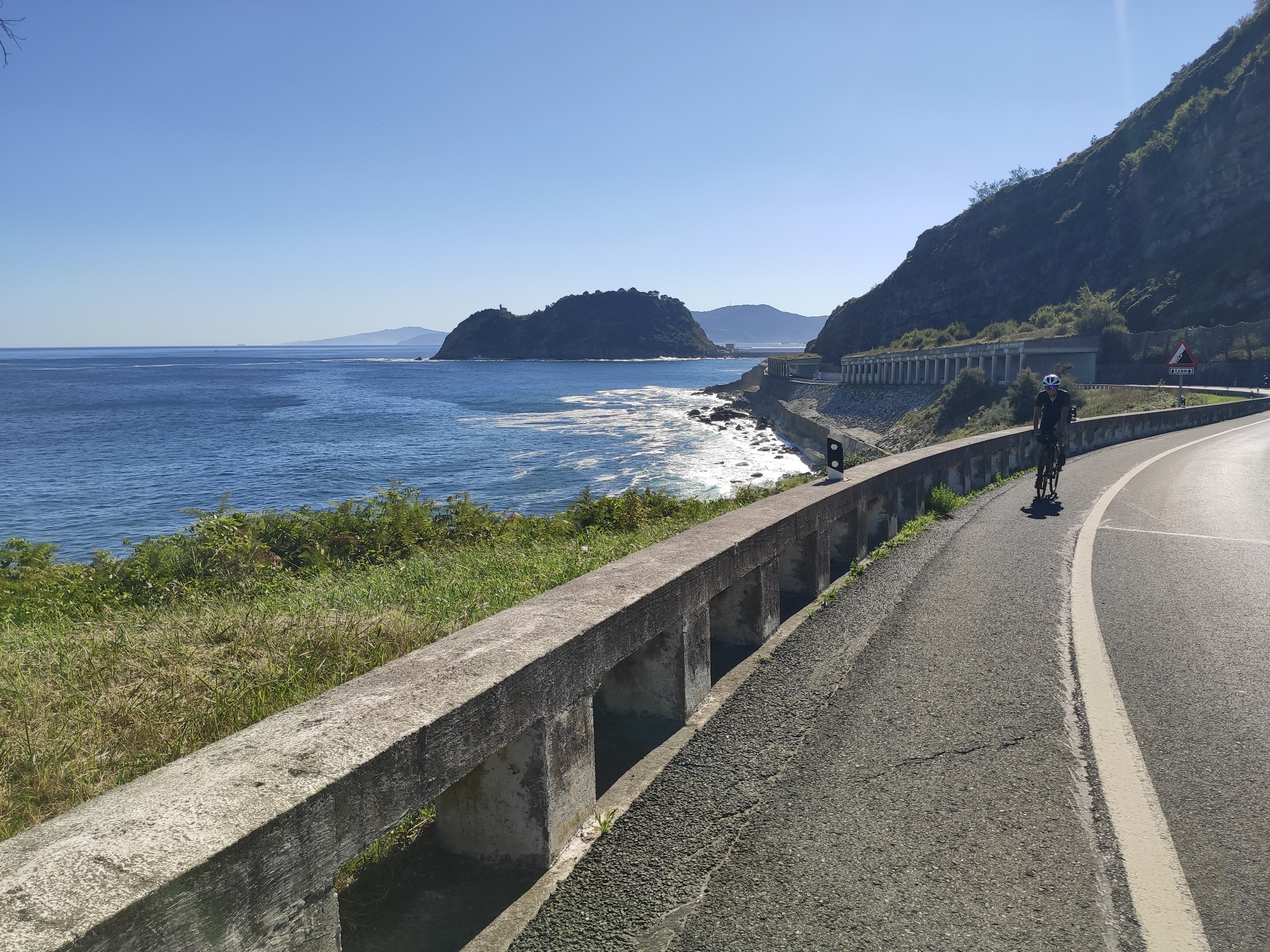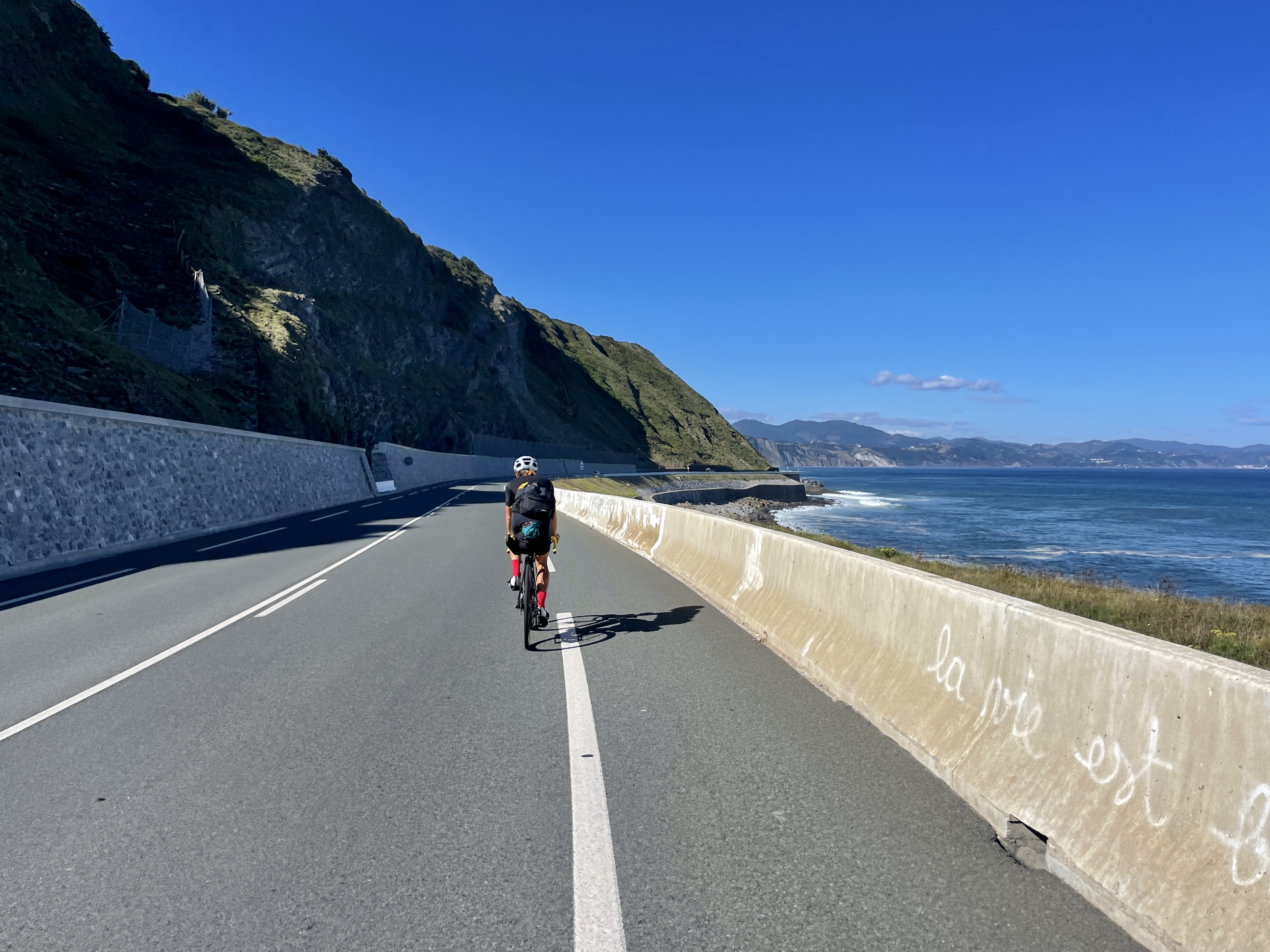 We had some very busy roads to navigate at first, slowly leaving behind the busiest urbanisation while getting used to the weighty swing of a bike with a loaded saddle bag again.. ! Cruising along lightly undulating coastal roads with inviting beaches, it wasn’t until the turn off for our first climb of the trip – the Jaizkibel – that we got away from the congestion.