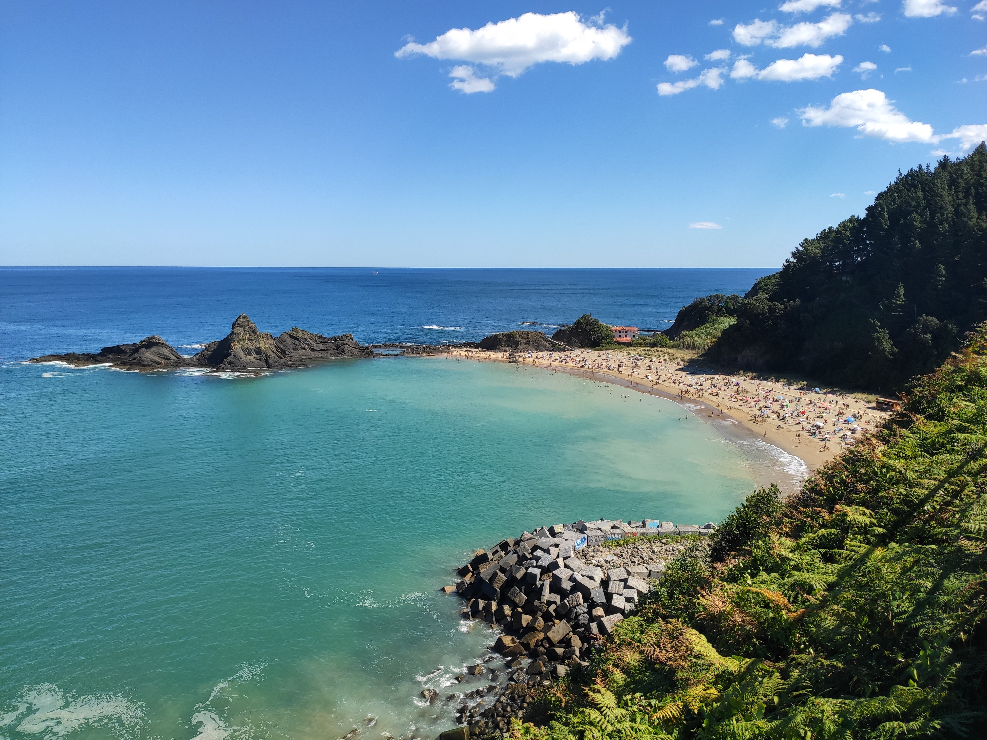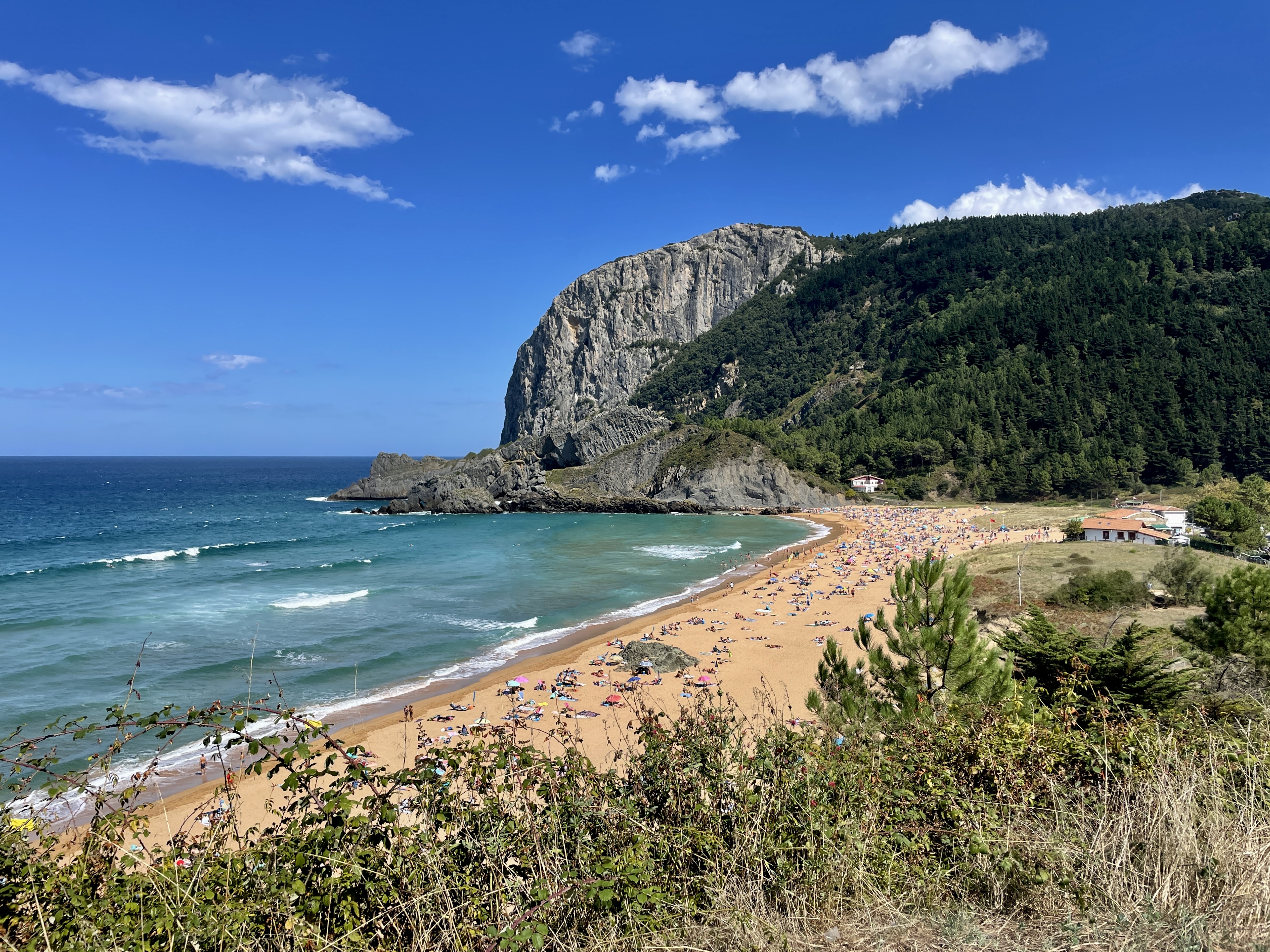 Anyhoo.. We were very tempted with a sea swim, but thought we might get a bit further first and thought about swimming at playa de Laga up the coast. We headed for Ea on the way, a truly picturesque village in a valley overflowing with trees. As we approached our planned swim spot, the final few kilometers of road were completely parked up with cars, and it soon became evident that this was quite the surfing hotspot..! Windy and the sea wild and tossed up, we skipped the swim altogether and instead had a picnic with views of the imposing Cabo de Ogoño that towers over the sands.