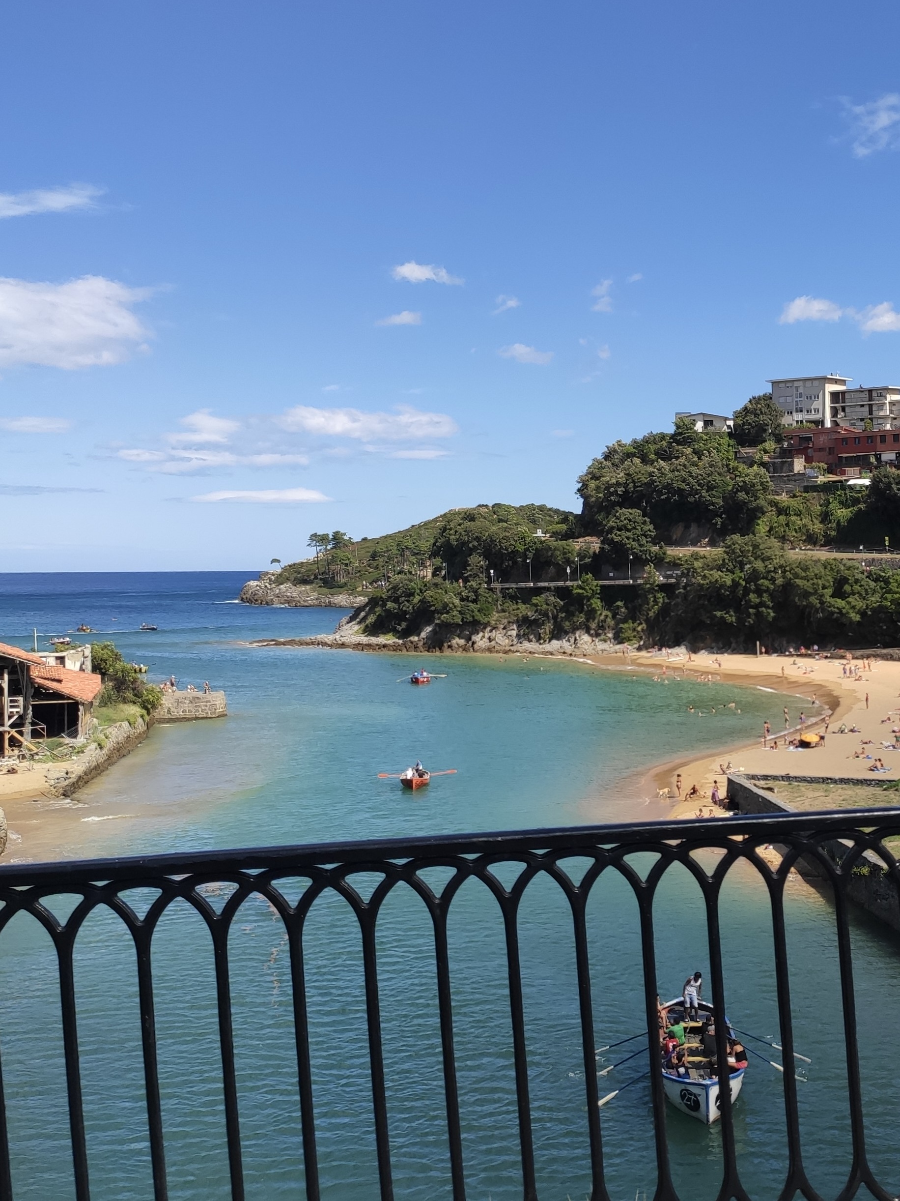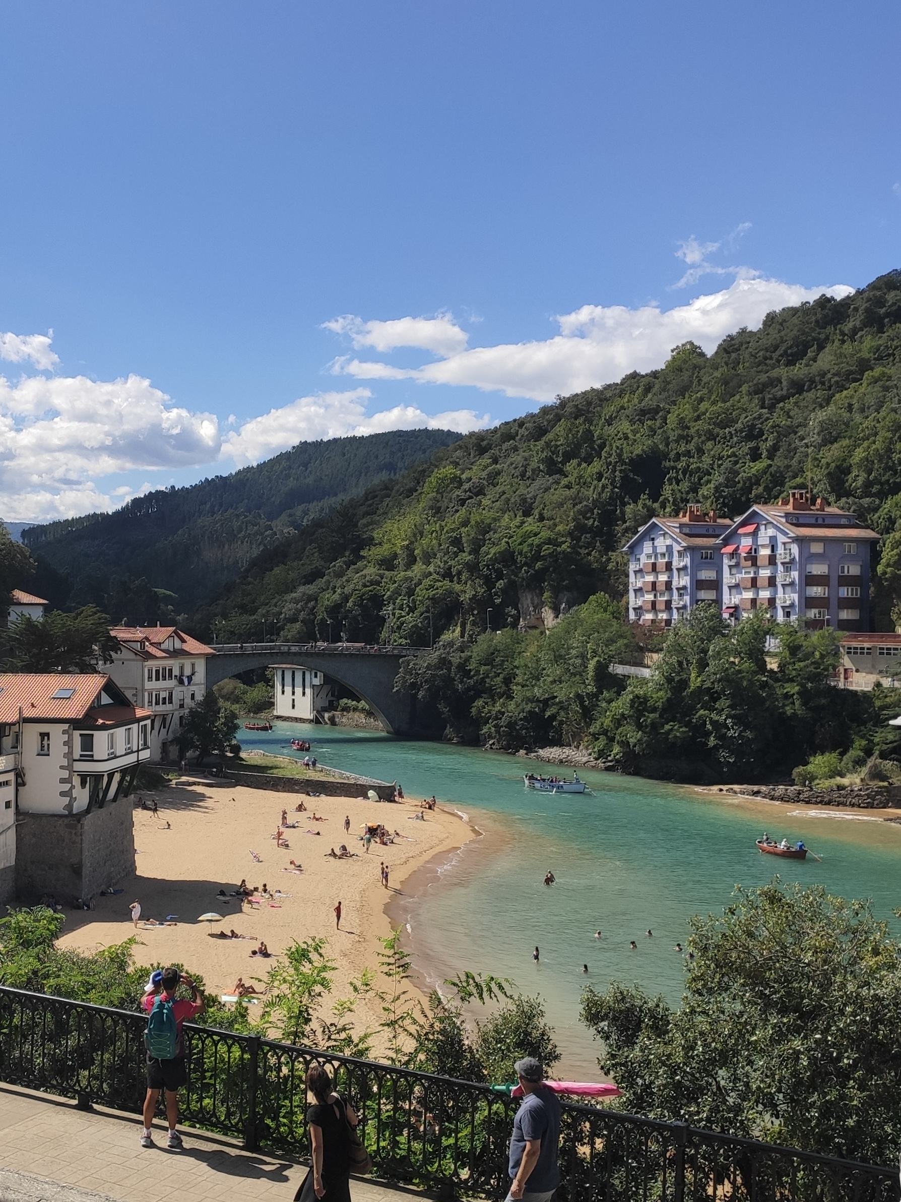 We emerged to Lekeitio: a town brimming with charm, which is entered via a large bridge over a river of glistening caribean hues, and today full of large rowing boats in some sort of event.. ! Apparently we had also missed the even madder event the day before, when in times gone by, a person would hold onto a goose attached to a moving boat by rope, and would successfully complete his challenge if he decapitated the goat before he lost his hold to the thrashing beast and waves.. At least nowadays its only a dummy and not a live bird anymore.. 😱😵💫🦆