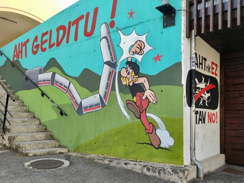 We started the day with a tour on foot searching for petit dejeuner, finding out that Asterix had apparently been recruited in the local opposition to the proposed TGV connection; These Romans are crazy.. !