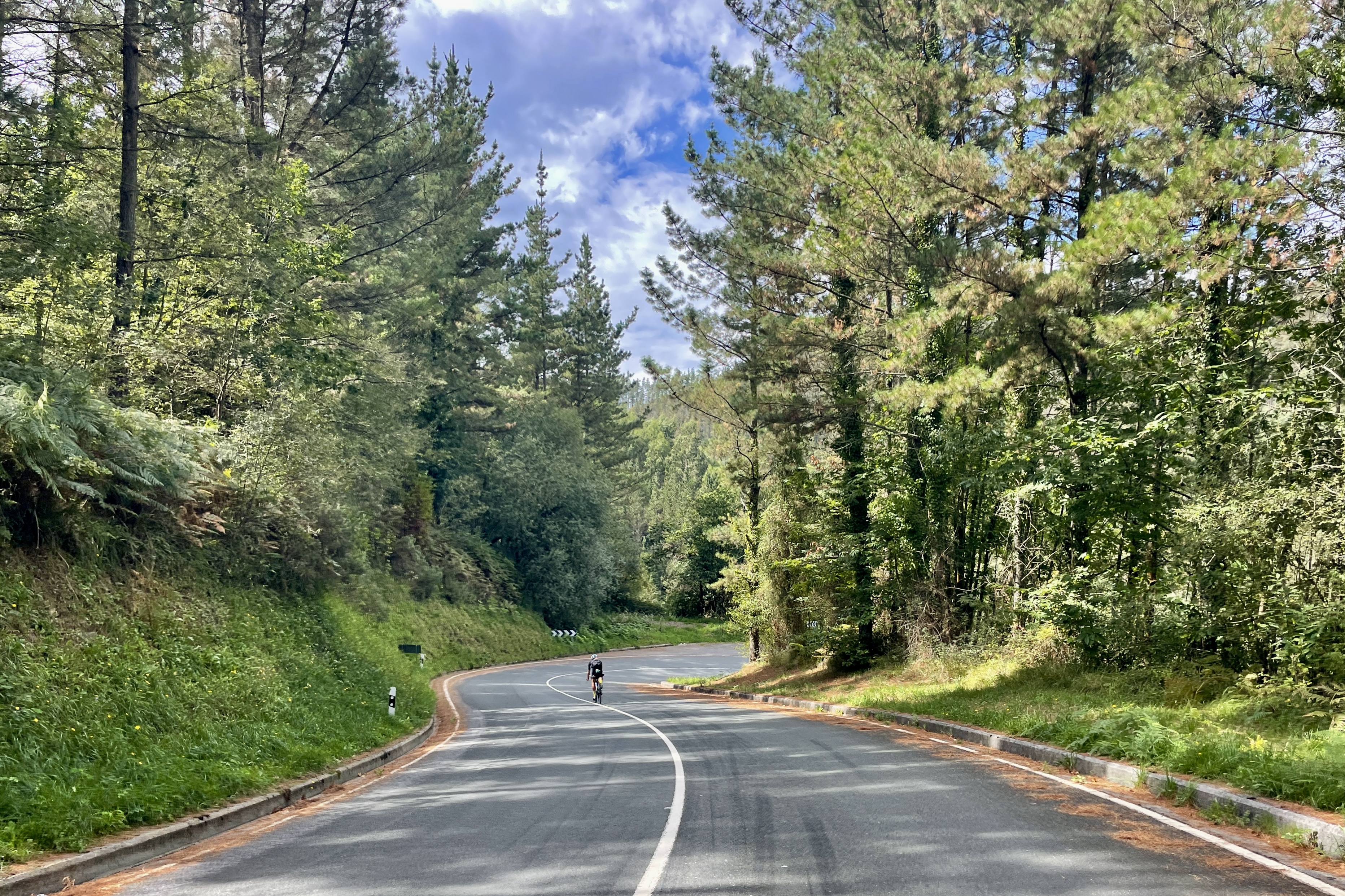 The first 45km were a commute along busy busy roads, some consolation coming from the wide berth the majority of the trucks in this industrious area were giving us. Then finally something of interest, as we headed towards the first climb of the day: the Balcon de Bizkaia. At once the contrast was vast; suddenly we found ourselves on deserted roads, only the odd other pedal-person, or forestry vehicle.