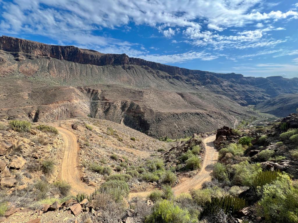 Here is the strava segment for the offroad part of the loop (the shortest way home is on the road down Ayaguares valley, adding another 10km to close the loop), but there are other options to extend, such as towards Las Tederas- a very worthwhile out and back detour!